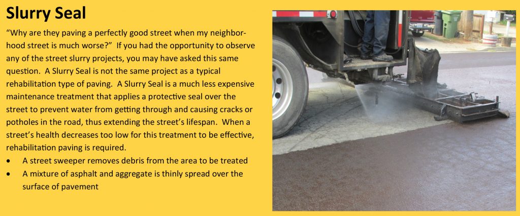 When possible, street projects are coordinated and scheduled with other projects such as water, sewer, electric utility work and storm drain repair/replacement.