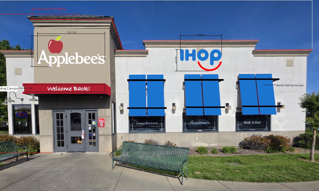 - Additional signage for IHOP branding (a new can to the monument/pole sign will be added)