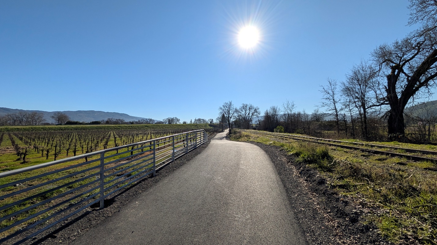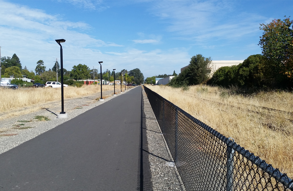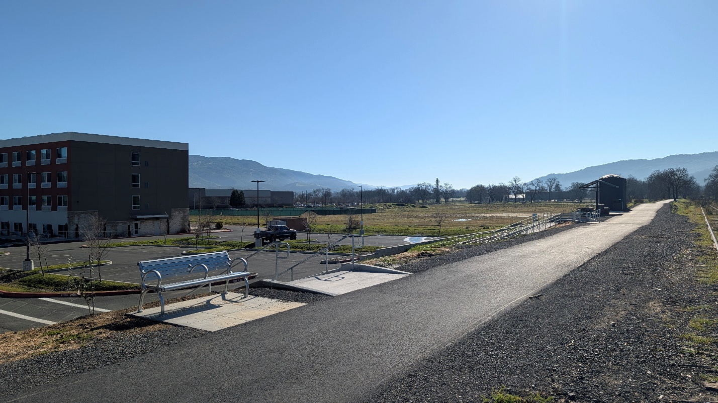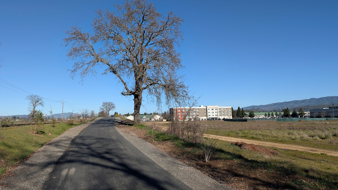 The Great Redwood Trail – Ukiah (Phase 4) completes a key 1.5-mile paved trail segment in south Ukiah, extending the trail from Commerce Drive to Plant Road. With this connection in place, residents and visitors can now enjoy a continuous 3.3-mile walking and biking route from Brush Street in north Ukiah to Plant Road at the city’s southern edge.