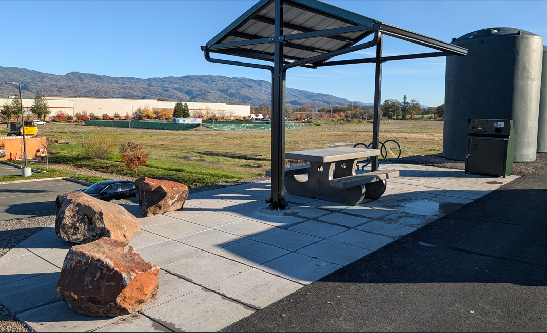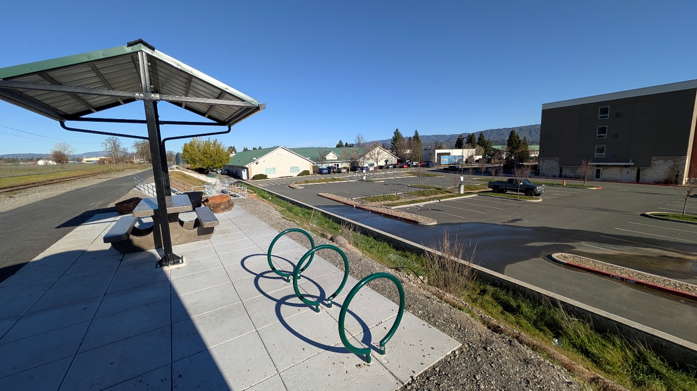 - Mendocino County Animal Shelter Area – A covered picnic area, bike repair station, bike racks, and a bench