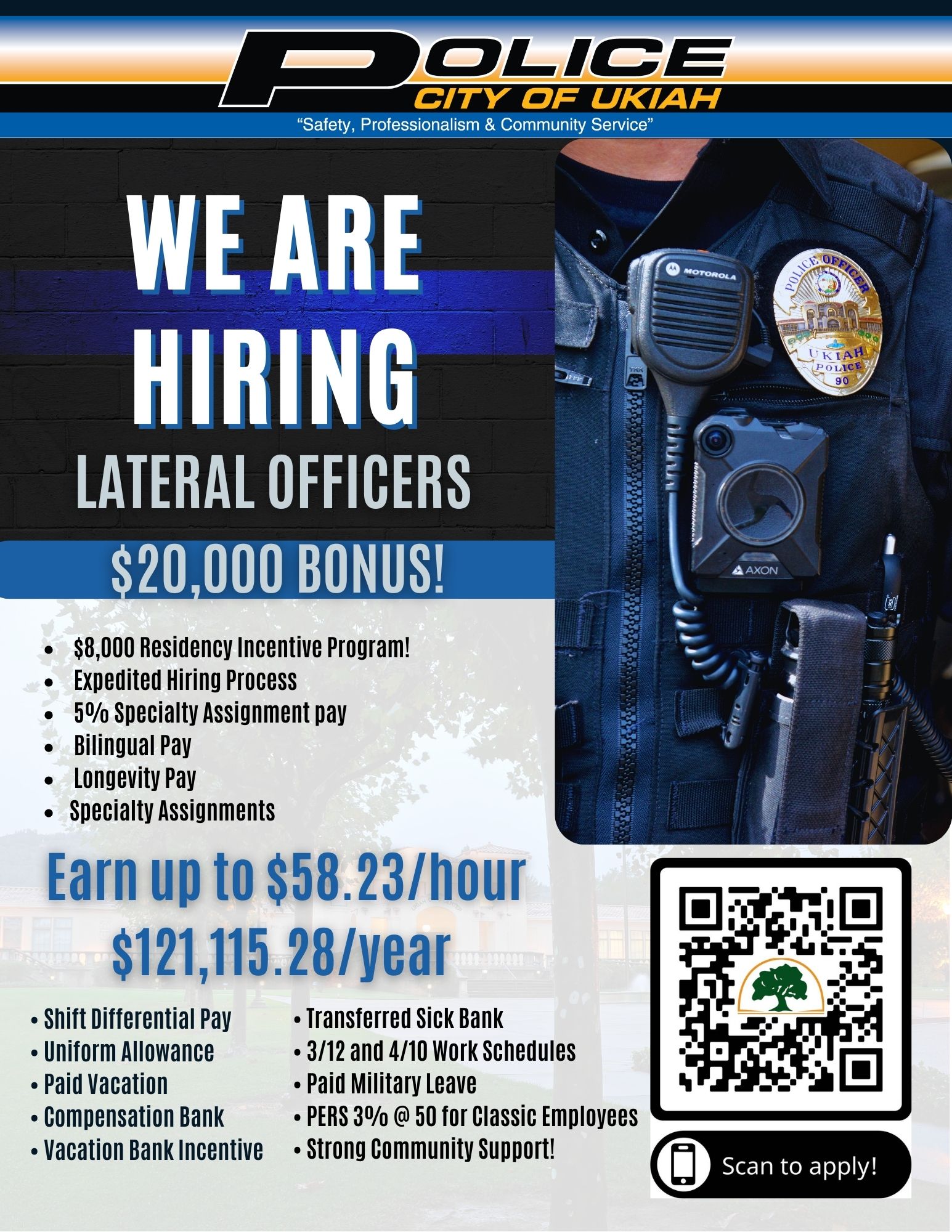 - Lateral Officer Flyer which includes a $20,000 Lateral Officer Bonus & an $8,000 Residency Incentive Program