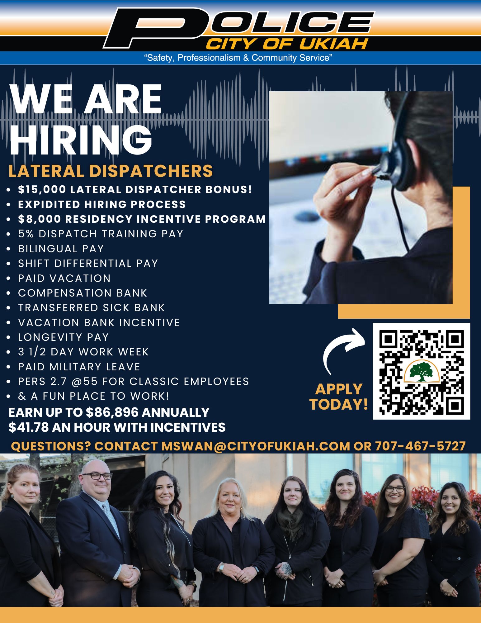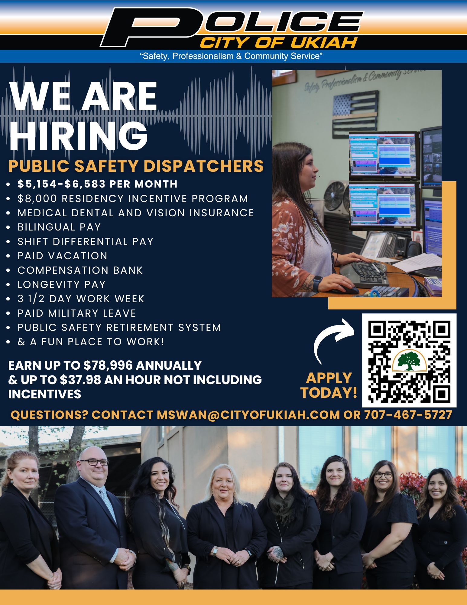 Open recruitment for Public Safety Dispatcher (Entry-Level & Lateral):