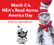 On March 2, I’m hoping you’ll participate in Read Across America at home by declaring your household’s independence from electronic computer games, social media, and even Netflix and Hulu–for at least an hour–to show your kids how fun books can be. Read with them. Read to them. Show them why you love to read. Who knows? You may choose to make this electronic-free time a habit.