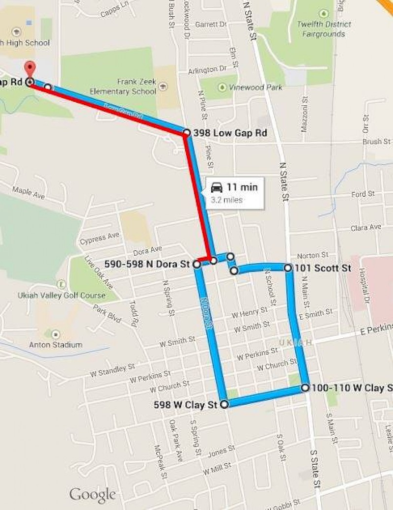 This year’s homecoming parade will start at Ukiah High School at 3:30 p.m. on Friday, October 7. It will travel east on Low Gap Road to N. Bush Street, then south on N. Bush Street to Grove Avenue. From Grove, the parade will turn on to Scott Street and then head south on State Street. The parade will stay on State Street past the Mendocino County Courthouse to Clay Street, then turn west on Clay, north on Dora Street and back to the high school.