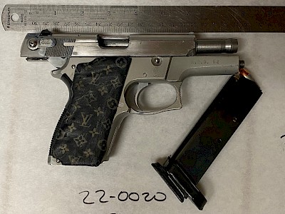 While at the scene, Officers were contacted by the owner of the vehicle that Gonzalez and McKenzie were associated with. The owner advised that although they were related to Gonzalez, he did not have permission to drive the vehicle. The owner granted permission to have the Officers conduct a search of the vehicle. The search resulted in the discovery of a cloth bag that was located next to the driver’s seat. Inside the bag were two loaded firearms (pistols) and a box of ammunition. The bag bore writing that matched a unique tattoo that was on the back of Gonzalez’s head. Gonzalez was found to have at least one prior Felony conviction, so he was prohibited from possessing firearms and / or ammunition. The owner of the vehicle took custody of their vehicle and did not wish to have Gonzalez charged with vehicle theft. Further investigation confirmed Gonzalez a drove the vehicle to the location and only he and Wilson were inside the vehicle when they arrived at the Chevron. Gonzalez and Wilson were transported and booked at the MCSO Jail.